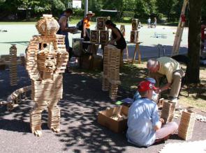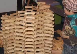 Das Holzbauprojekt verwandelt ganze Räume in Holzwelten. Dabei kommt naturbelassenes Eichenholz Industrieparkett, unterstützt von ALEKO-Parkett aus Dortmund, zur Anwendung. Gebaut wird nach dem beliebten und bewährten System Kapla, genial, beliebt und pädagogisch wertvoll. Faszinierend dabei sind nicht nur die unterschiedlichen Bauwerke, sondern auch die vielfältigen Einsatzmöglichkeiten: